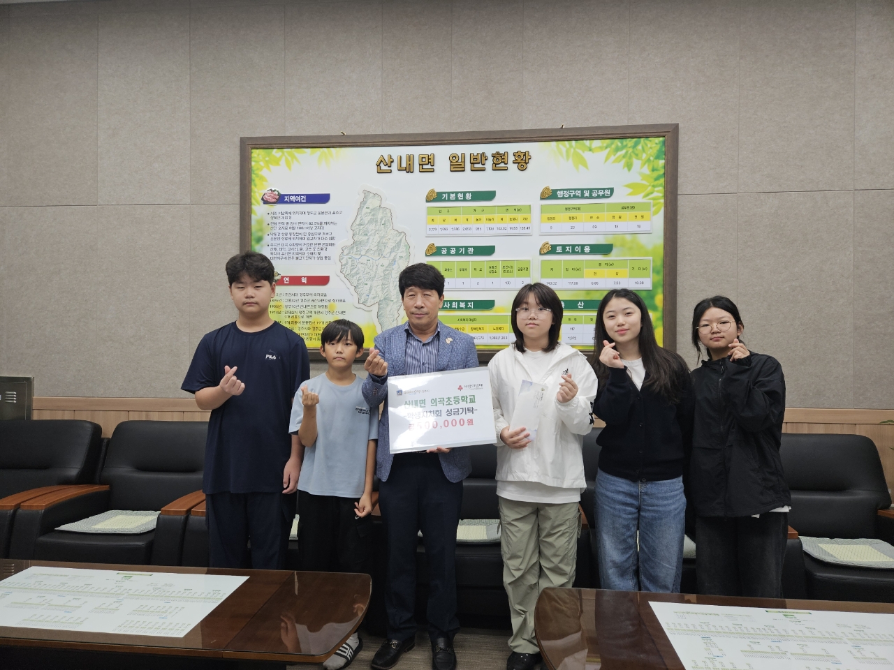 산내면 행정복지센터는 지난 14일 의곡초등학교 학생자치회에서 지역 내 어려운 이웃을 위해 성금 50만 원을 기탁했다고 밝혔다.