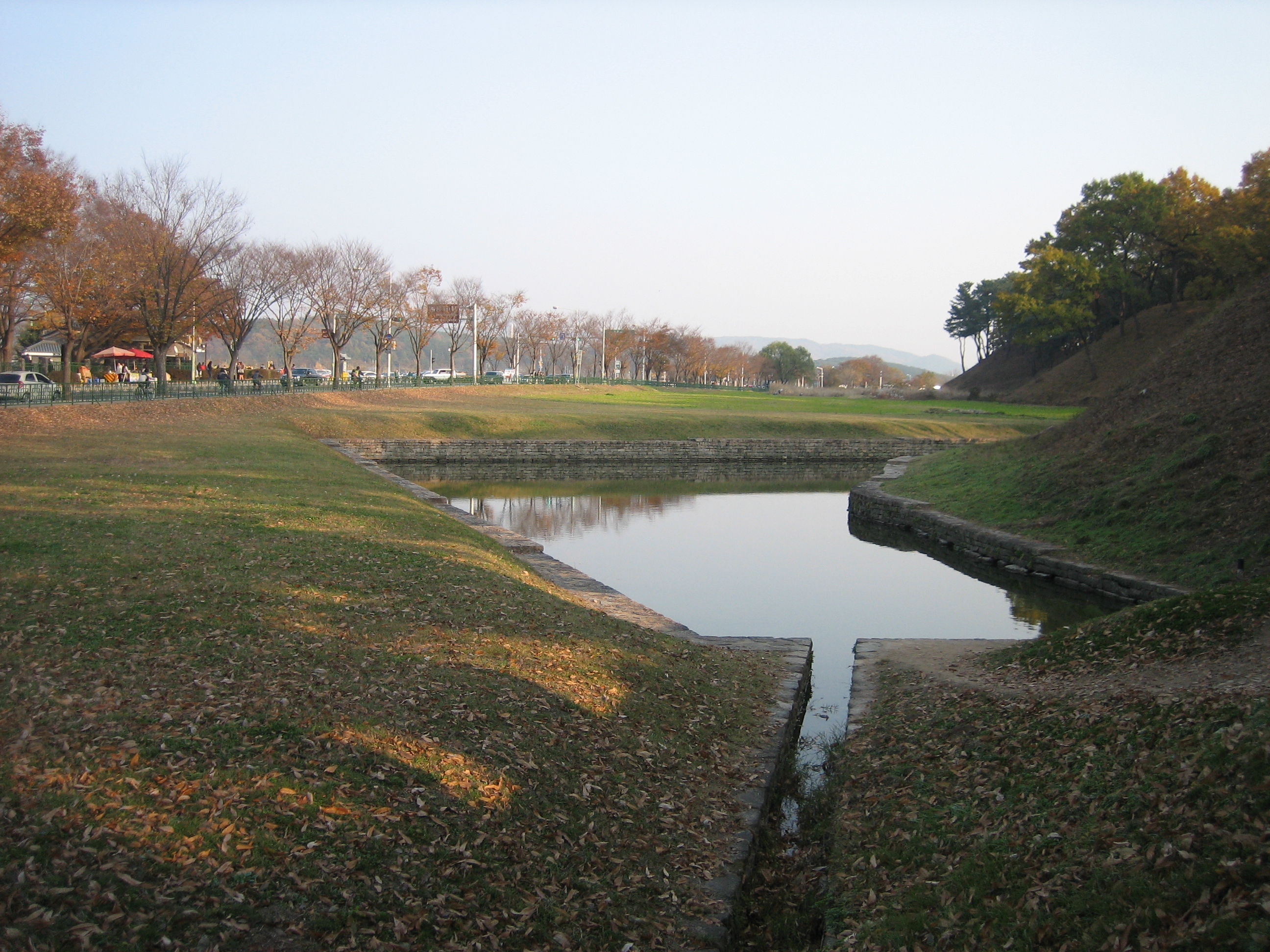 설명) 신라의 왕궁으로 가장 오랫동안 이용되었던 월성의 방어용 못[池]인 해자의 일부를 복원한 것입니다. 이 석축해자는 신라의 삼국통일 이후, 방어용 못을 통일된 왕궁의 조경 정비차원에서 만들어 진 것으로 판단되며, 처음의 방어용 못은 하부에 존재하고 있습니다.
