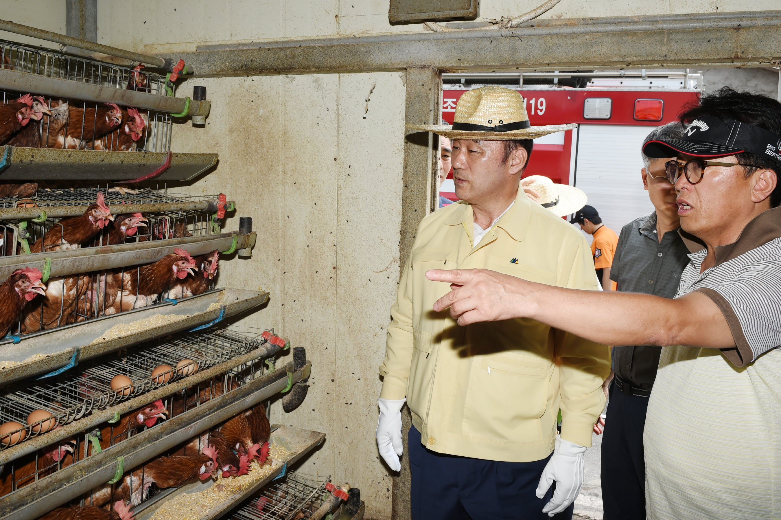 이에 최양식 경주시장은 6일 지역에서 폭염으로 닭 사육농가 피해 발생지인 천북면 신당리 희망농원을 찾아 폐사 원인을 확인하고 가축 사육현황 및 폭염대비 예방대책 등에 대해 관계자들로부터 보고를 받고 사육시설을 둘러봤다.