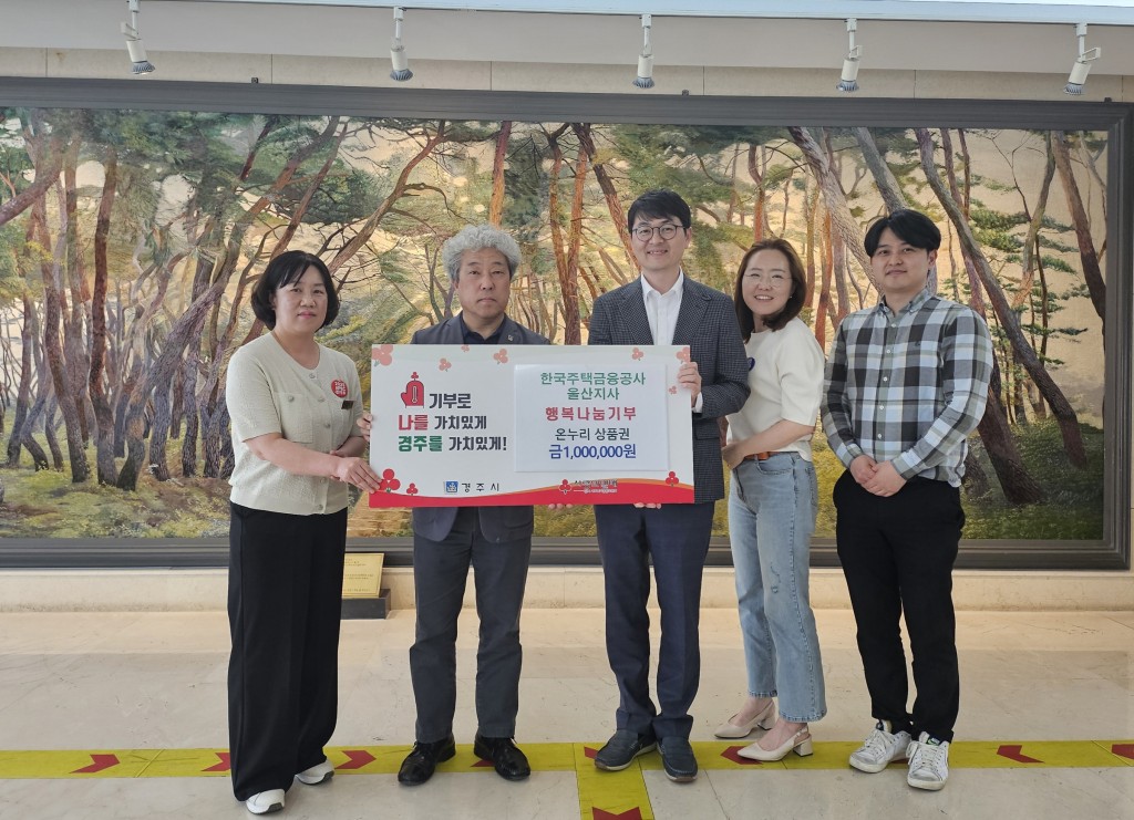 한국주택금융공사 울산지사(지사장 이재상)에서 지난 23일 경주시청을 방문해 경주시 관내 저소득 가구를 지원하기 위해 온누리상품권 100만원을 기탁했다.